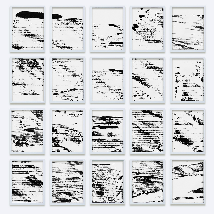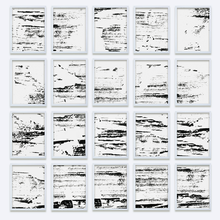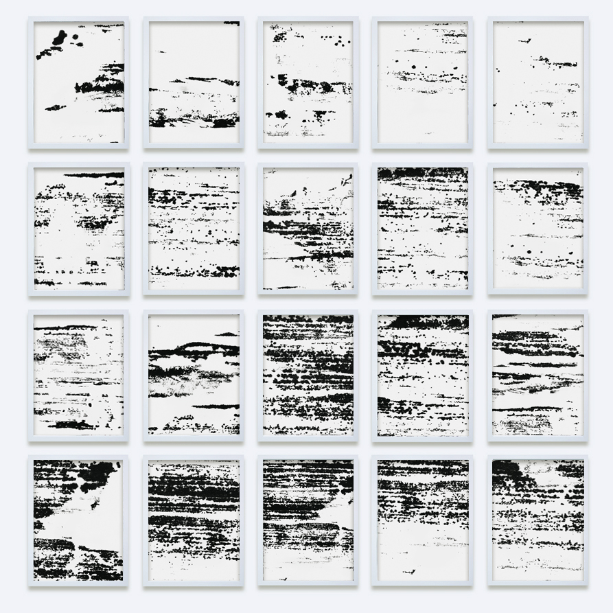 2022 // Acker II // 172 x 165 cm, each 30 x 40 cm // LP-transfer on paper
