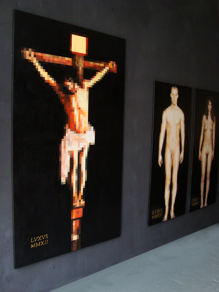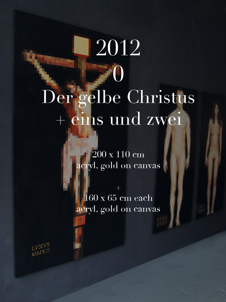 2012 // Der gelbe Christus // 200 x 110 cm // acryl, gold on canvas + Eins und Zwei // each 65 x 160 cm |