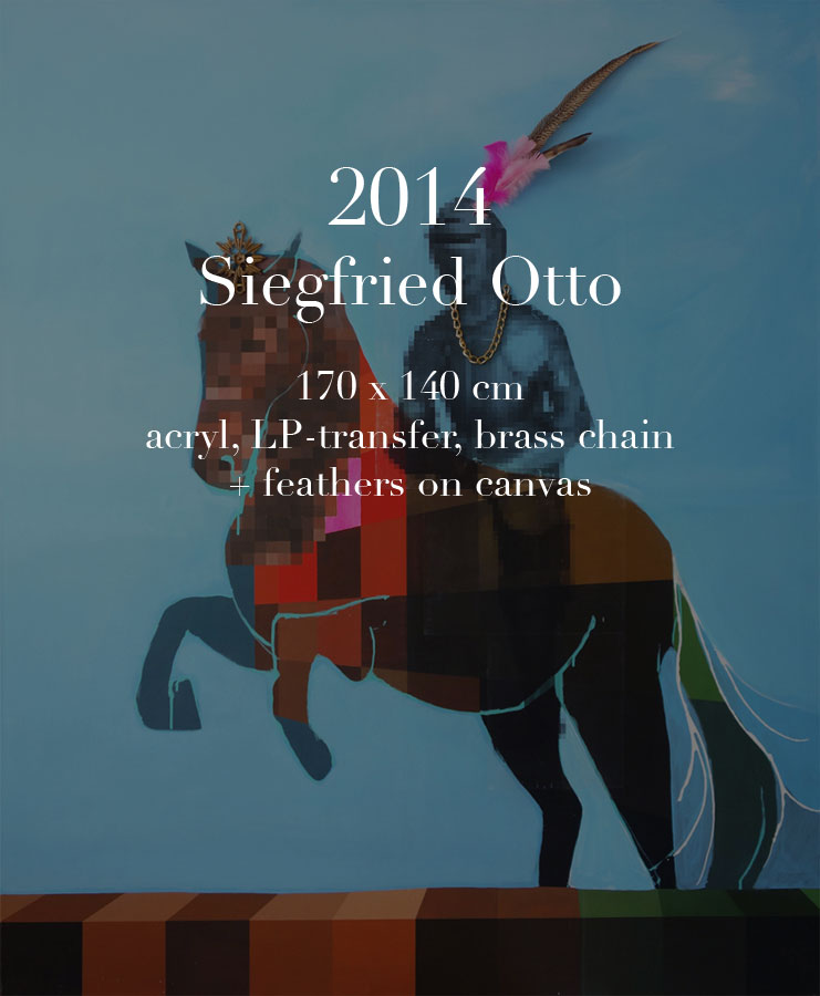 2014 // Siegfried Otto // 170 x 140 cm // acryl, LP-transfer, brass chain + feathers on canvas |